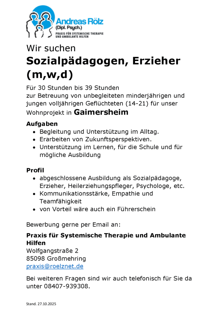 Wir suchen für verschiedene Einsatzbereiche immer wieder Mitarbeiter/innen.